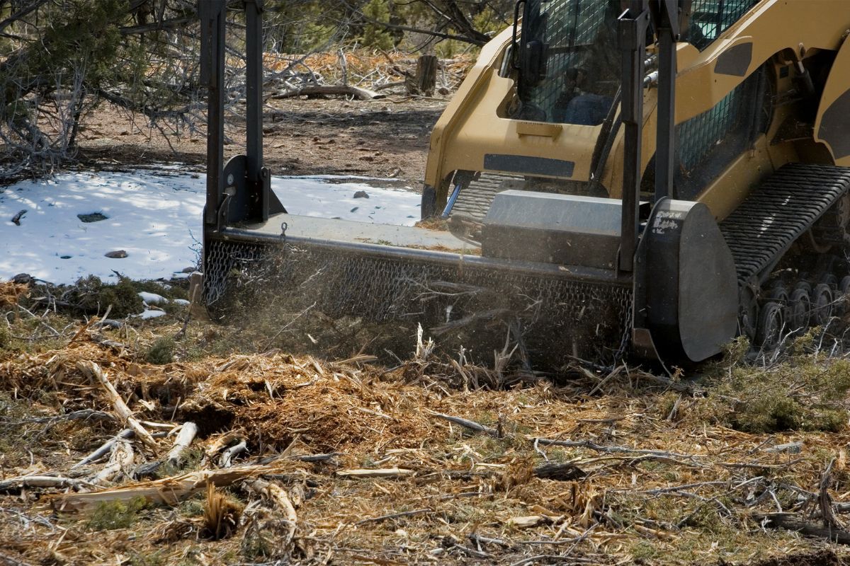 Brush, undergrowth, and small trees are mulched directly into the soil.